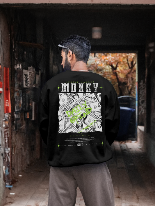 Hustle Harder Money Printed Oversized Premium Sweatshirt